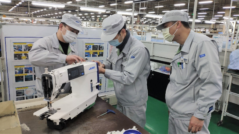 除了平缝缝纫机之外,还制造针织用、非服装用缝纫机等种类繁多的缝纫机,生产台数和金额都占JUKI整体的3成,是工业用缝纫机主要网点。我们严格遵守QCD,开展保护环境的工厂运营。