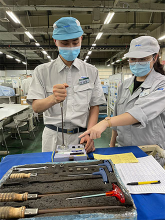 发挥生产多种多样量产机型的优势,构建公司内部检定制度,积极培育多能工化人才。