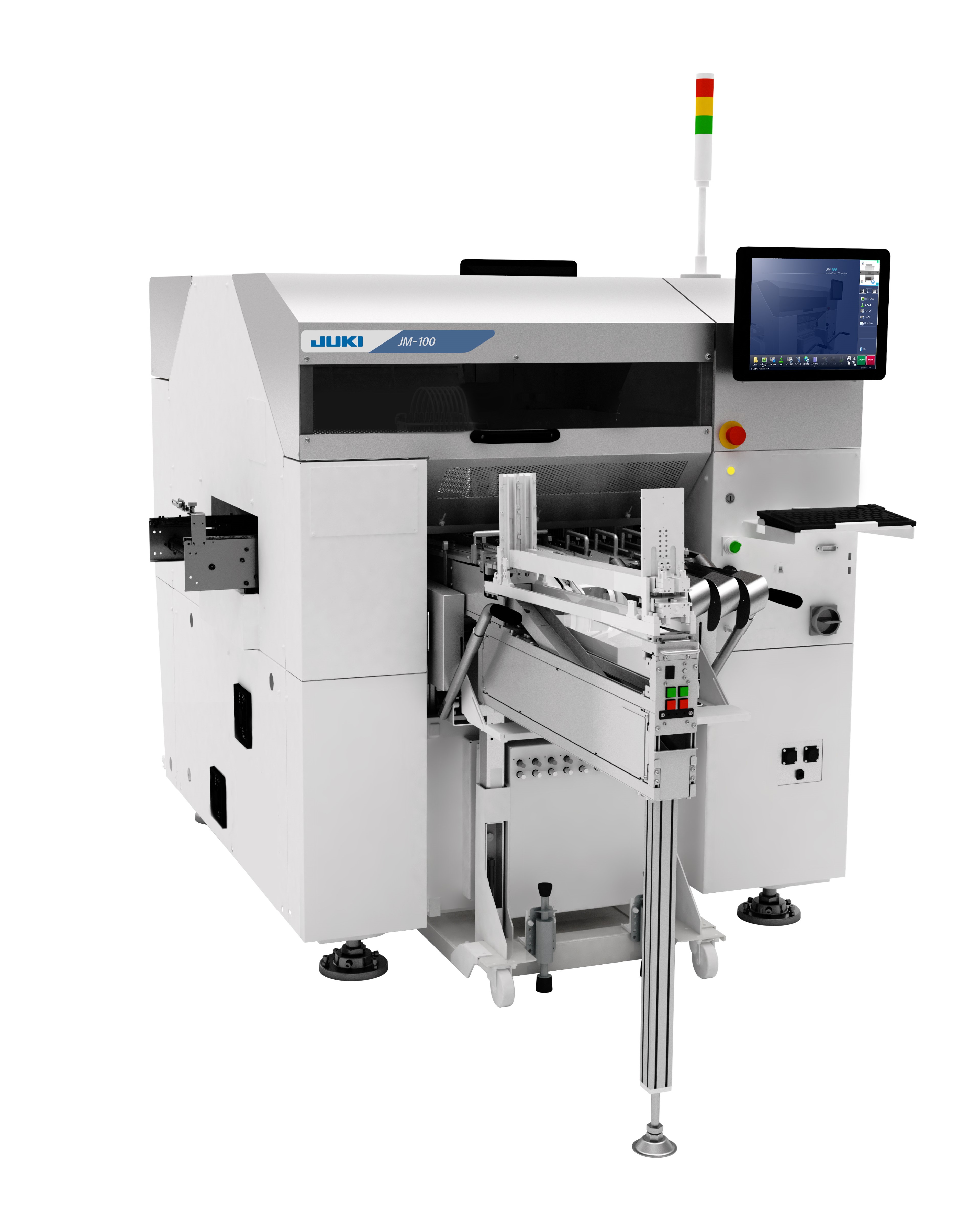 JUKI将于2018年10月29日起在日本国内外发售新产品“JM-100”。该产品将提高手插件自动化的异型元件插件机的插入速度并扩大了对应元件尺寸。